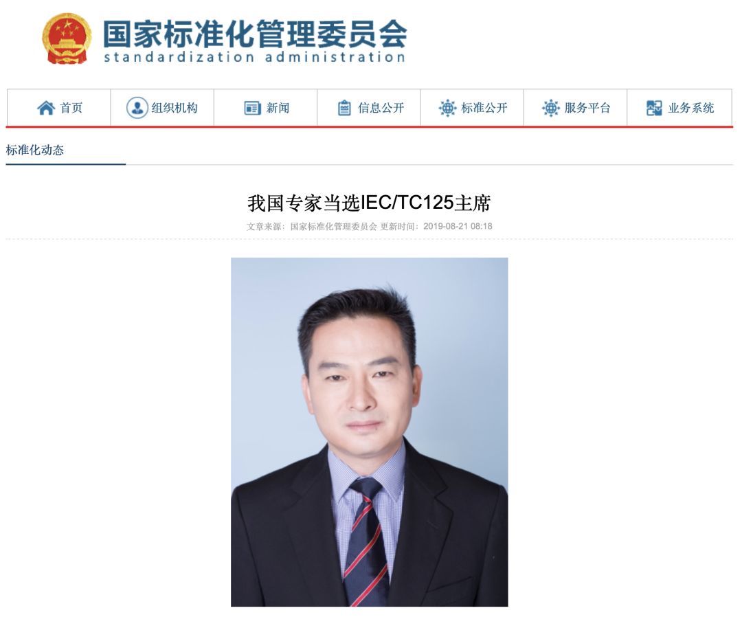 2019年8月12日国际电工委员会IEC发布消息,宣布我国专家吴小东当选TC125主席,任期从2019年8月至2025年7月。